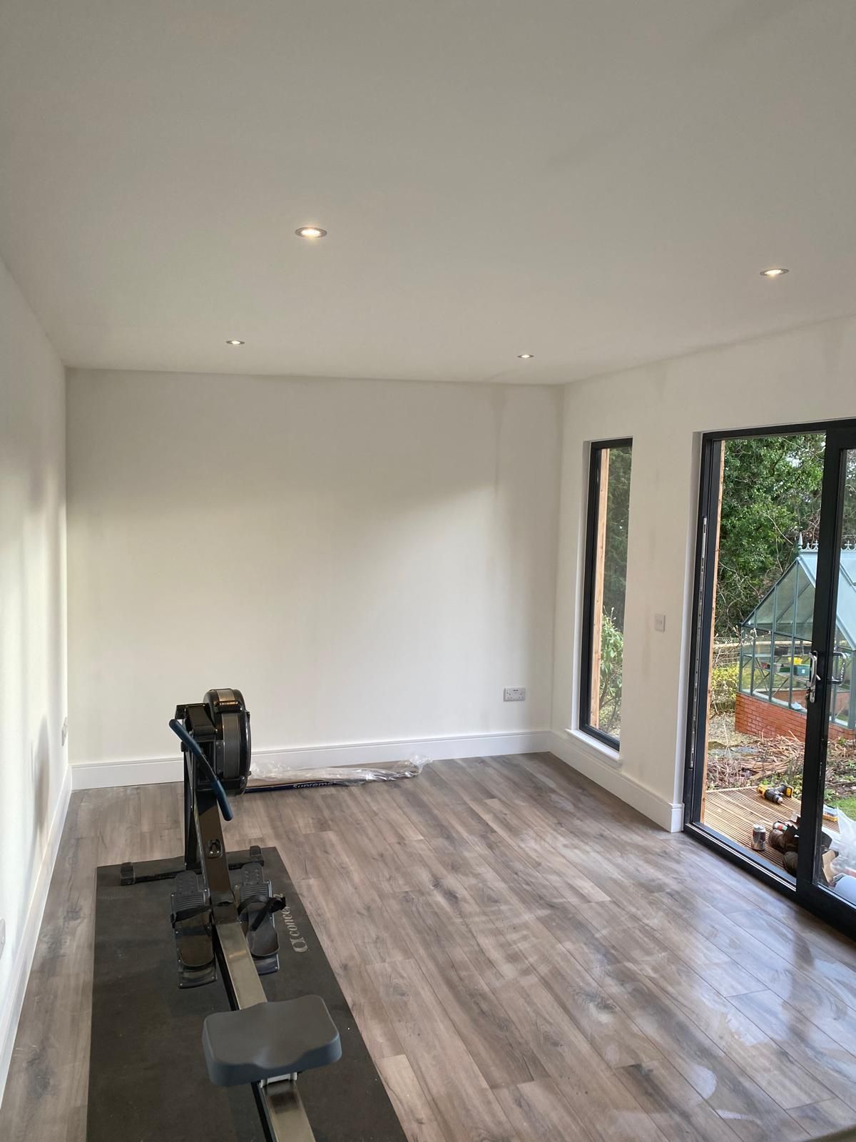 Our team focused on a garage to garden room design blending functionality with aesthetics, ensuring the space was not only practical for workouts but also a serene environment for relaxation.